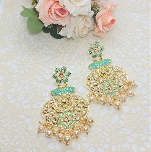 MIRZA- ANTIQUE SKY BLUE CARVED STONE KUNDAN EARRINGS