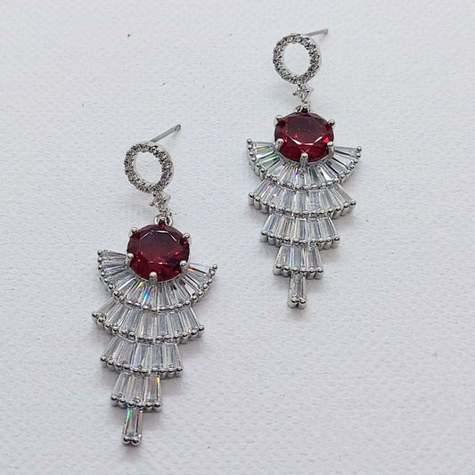 RED LEAF-CUBIC ZIRCONIA EARRINGS